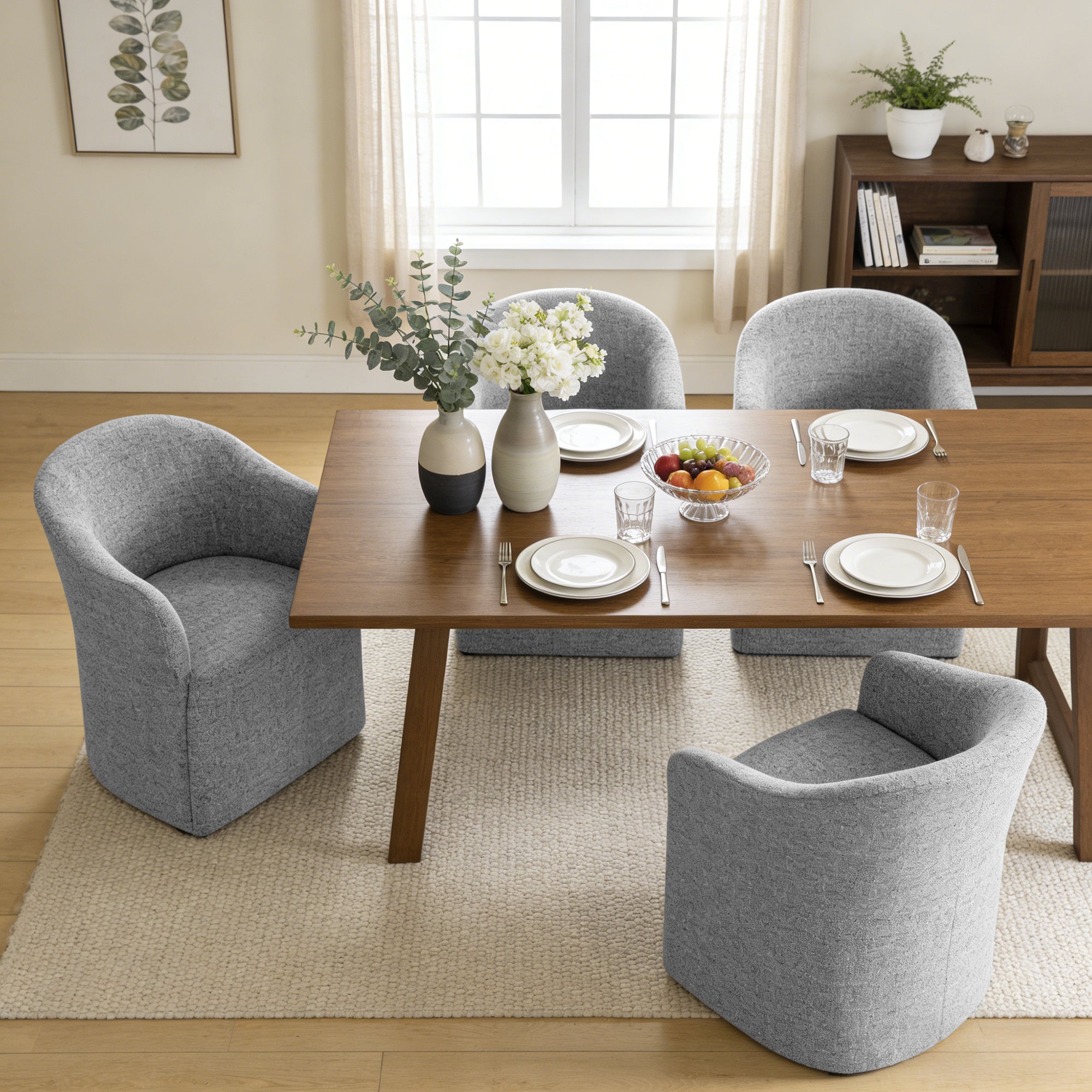 Contemporary Barrel Dining Chair with Casters – OEKO-TEX® Certified Upholstered Arm Chair