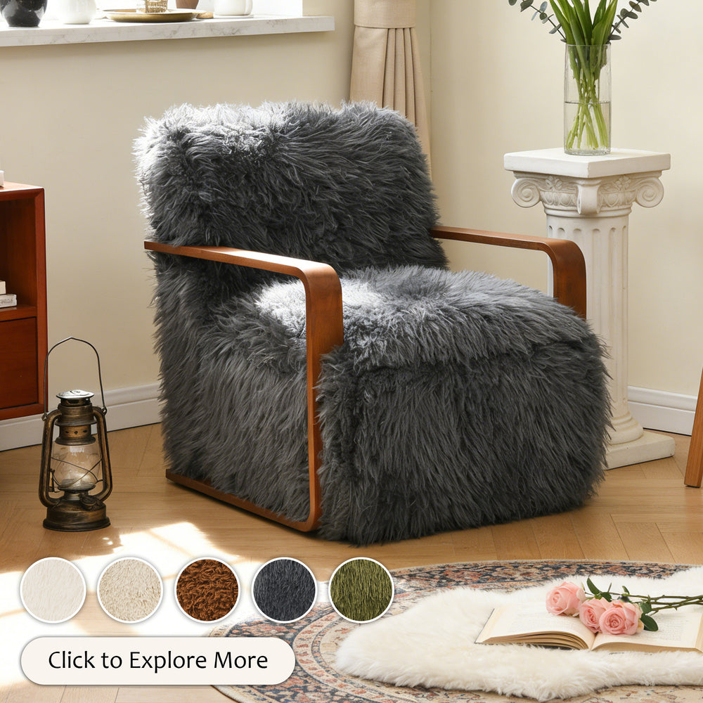 Contemporary Boucle Accent Chair - Slope Arms, Wooden Round Legs, OEKO - TEX Certified