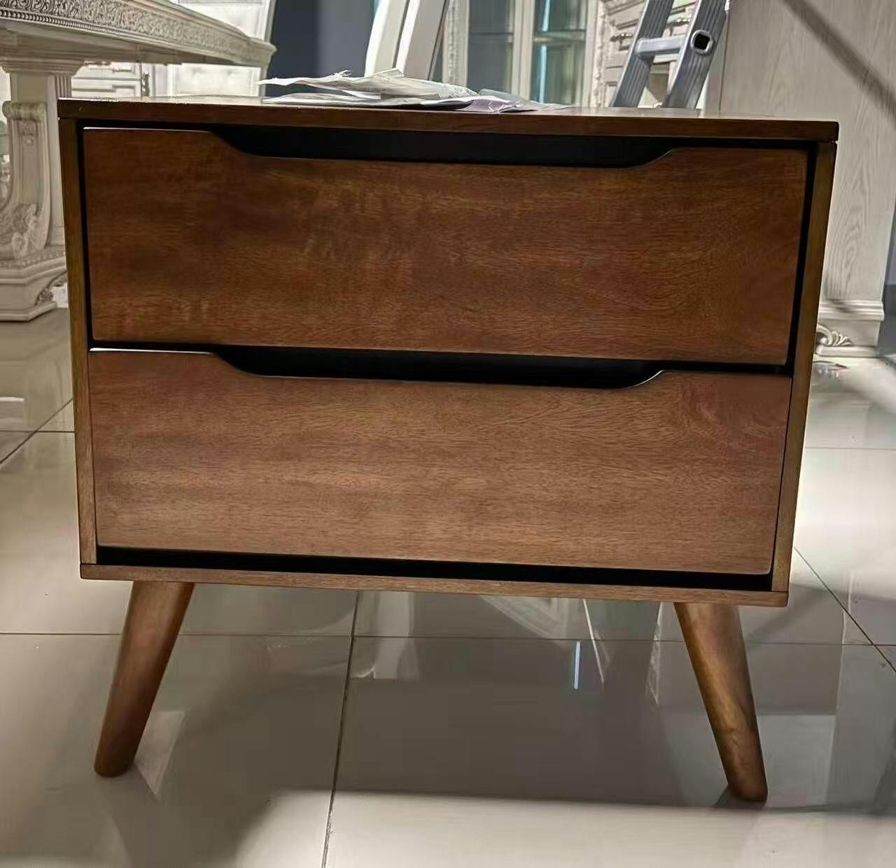 Fully Assembled Mid-Century Modern Solid Wood Nightstand - 2 Drawers, Sleek Tapered Legs and Hidden Pulls